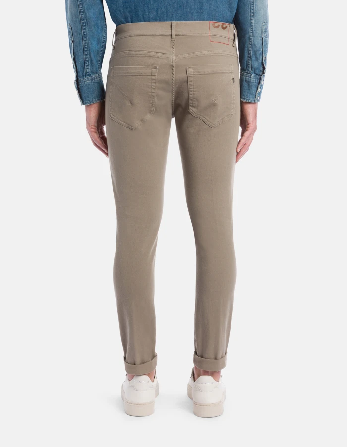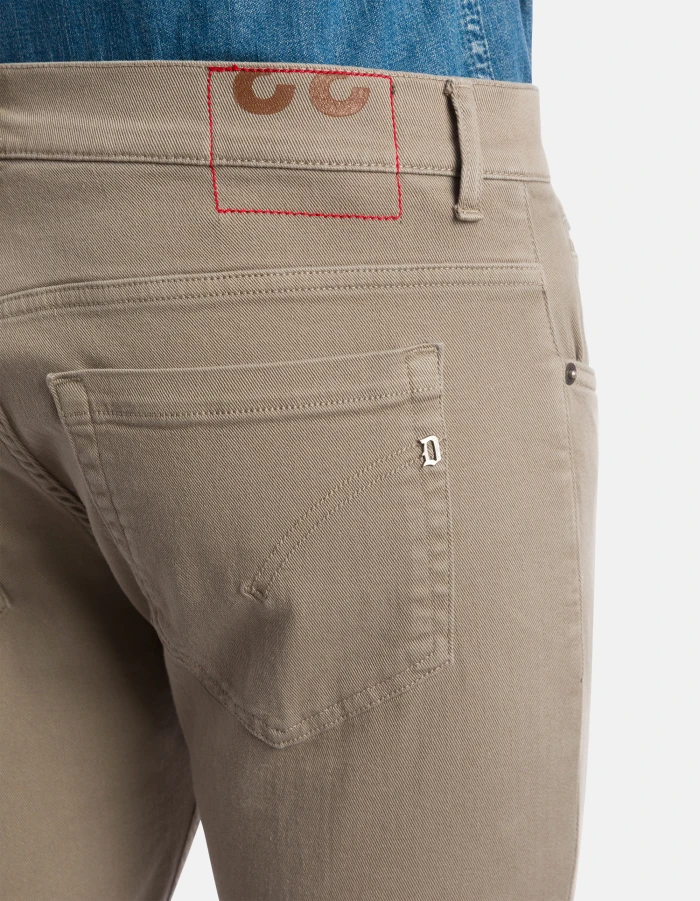 George skinny-fit 5-pocket jeans, low rise, small welt pocket. 10 oz left-hand stretch bull denim. Garment dyed. Dondup logo. Made in Italy