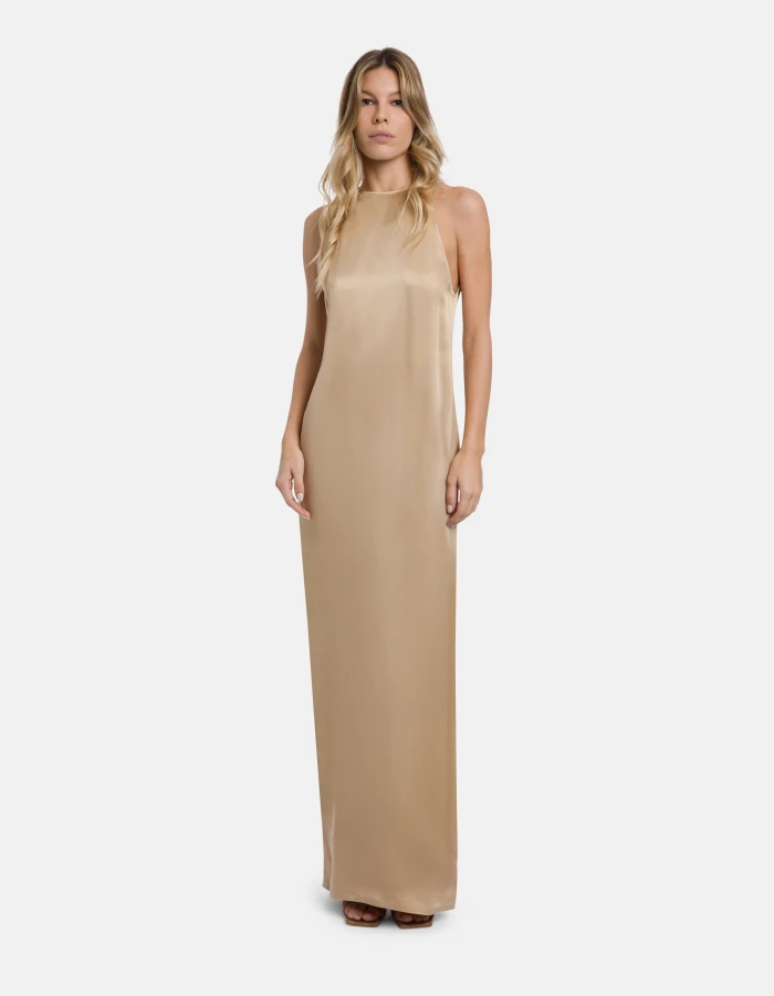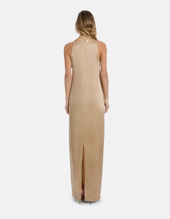 Long sleeveless dress with concealed zip fastening at the back. Crepe sablé. Dondup logo. Made in Italy