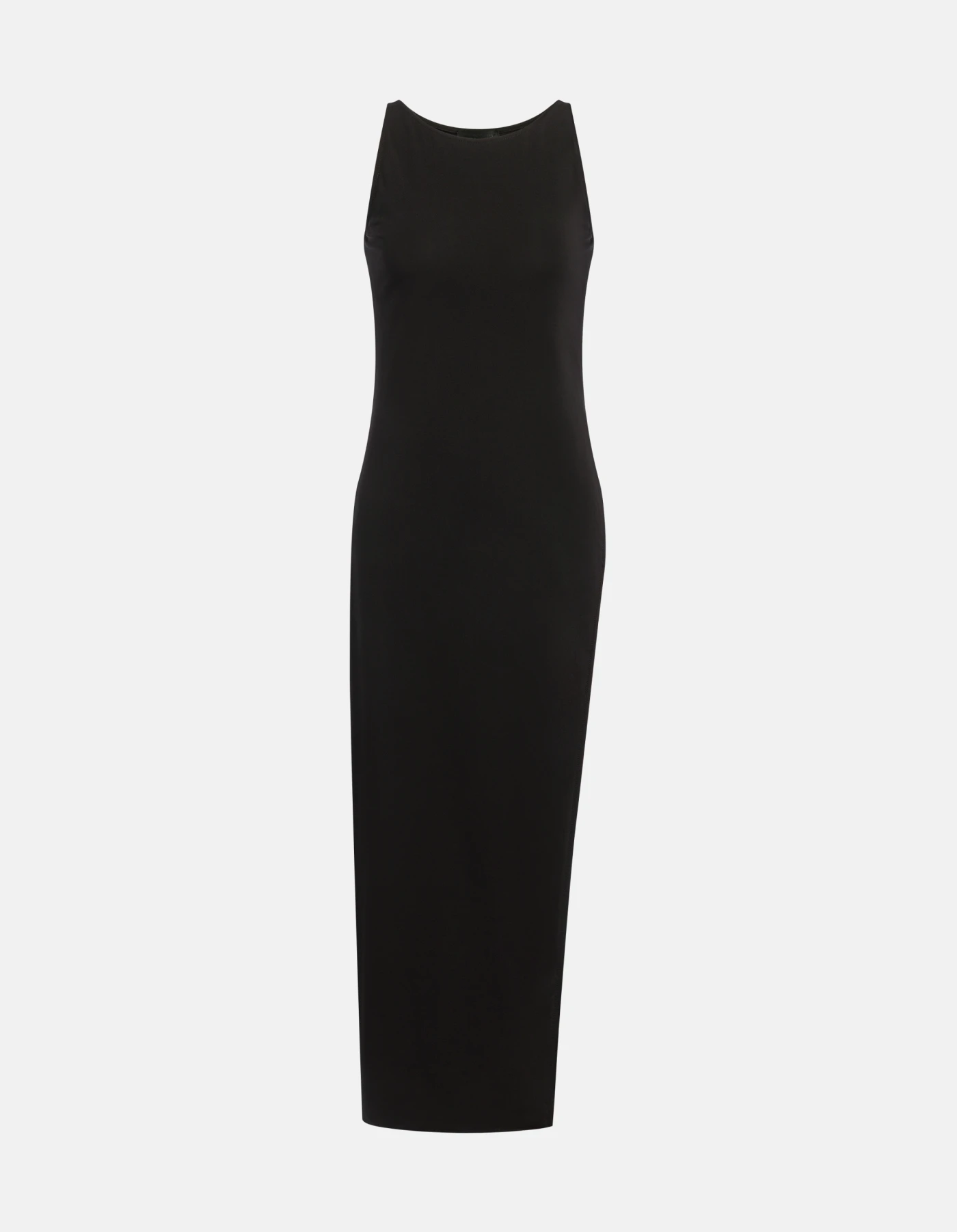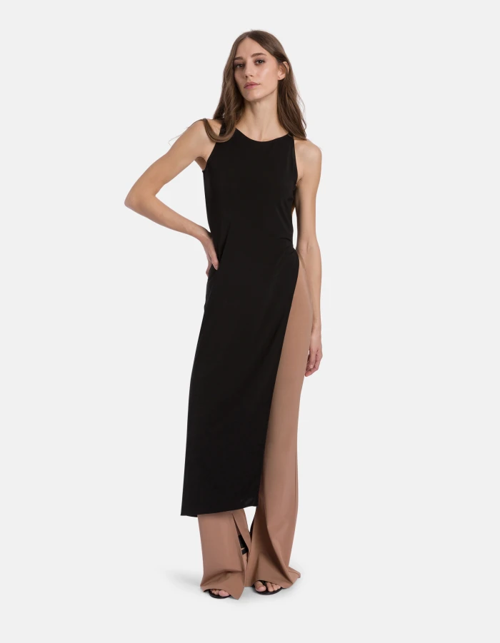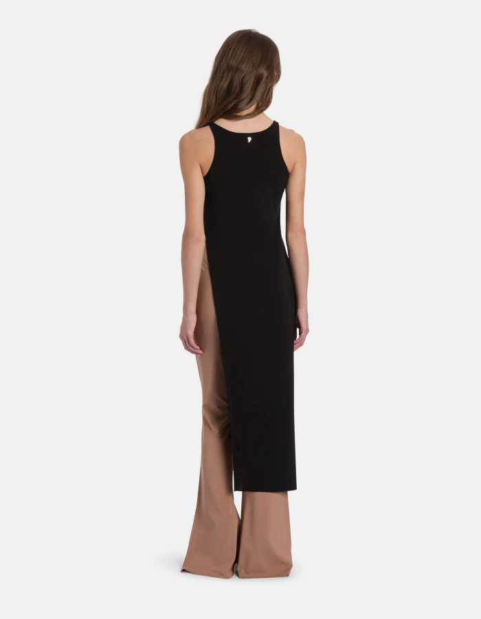 Long, sleeveless dress with deep side slit. Viscose jersey. Dondup logo. Made in Italy