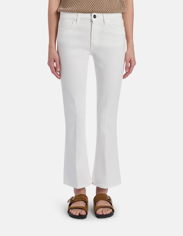 Mandy super-skinny 5-pocket bootcut jeans, high rise, length above the ankle. 11.5 oz bluesign APPROVED stretch bull denim. Bluesign garment-dyed. Dondup logo. Made in Italy
