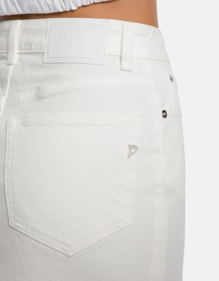 Slim-fit 5-pocket mini skirt. 11.5 oz bluesign APPROVED stretch bull denim. Bluesign garment-dyed. Dondup logo. Made in Italy