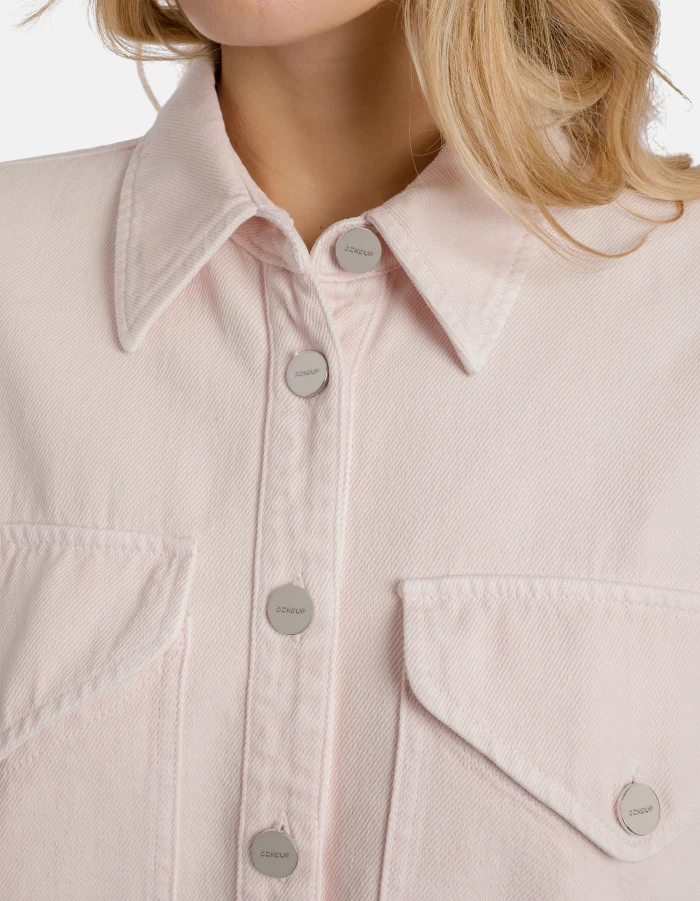 Oversized shirt with large pockets with flaps on the front and button fastening. 10 1/4 oz bluesign APPROVED rigid bull denim. Vintage garment dye. Dondup logo. Made in Italy