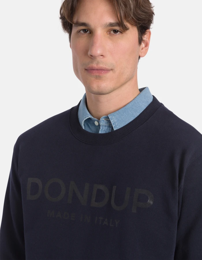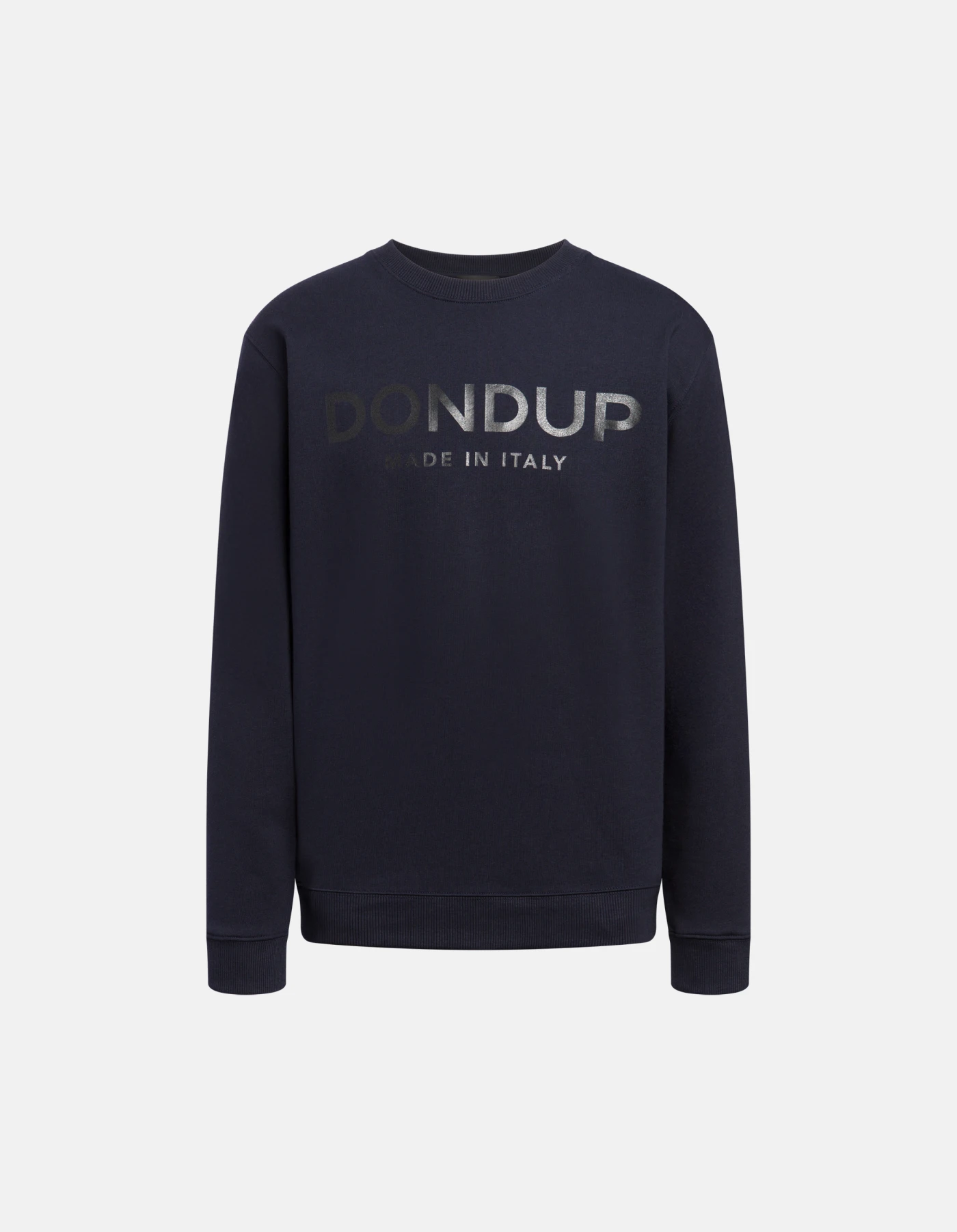 Regular-fit crew-neck sweatshirt with long sleeves and shiny tonal logo print on the chest. Cotton fleece. Dondup logo. Made in Italy