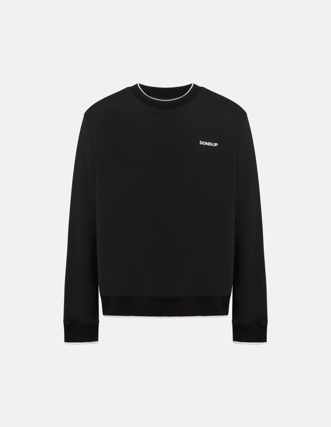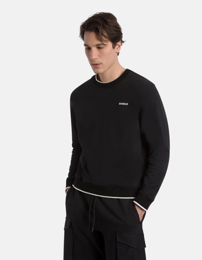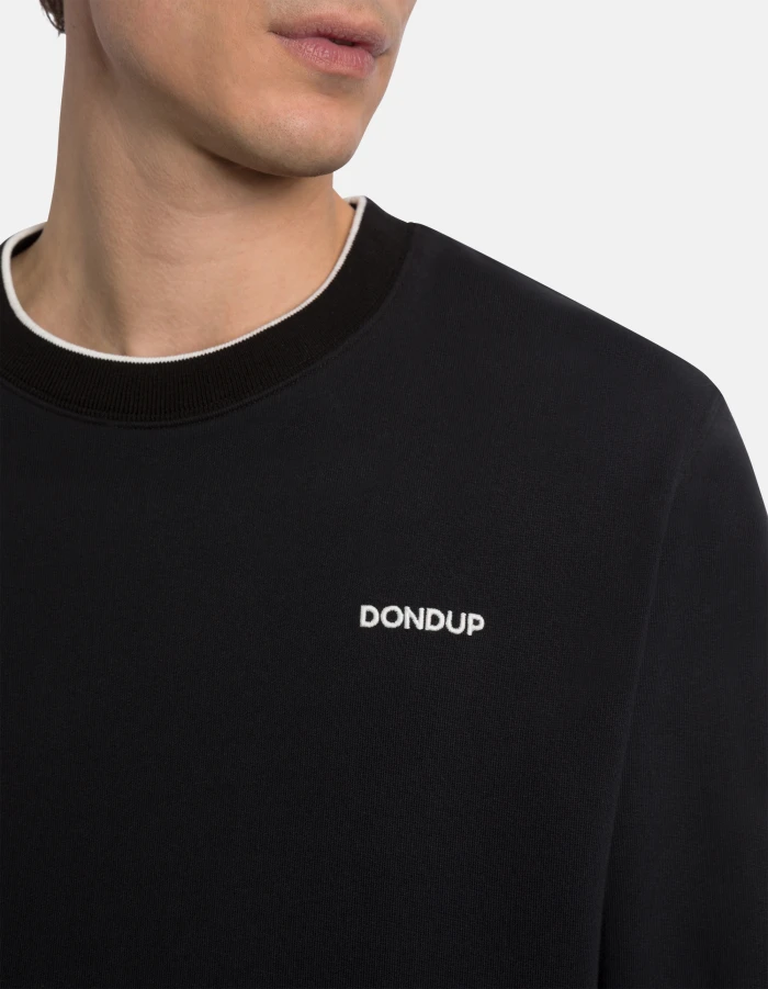 Regular-fit crew-neck sweatshirt with long sleeves with contrasting rib knit and embroidered logo on the left chest. Cotton fleece. Dondup logo. Made in Italy
