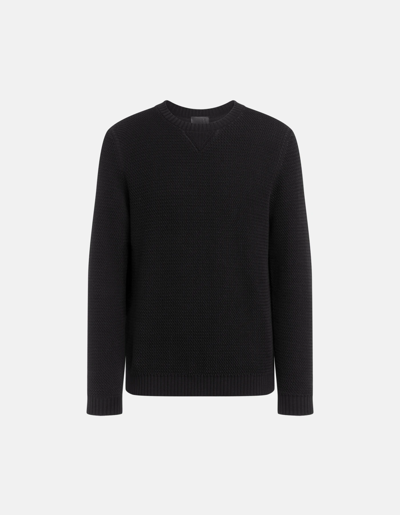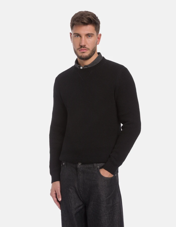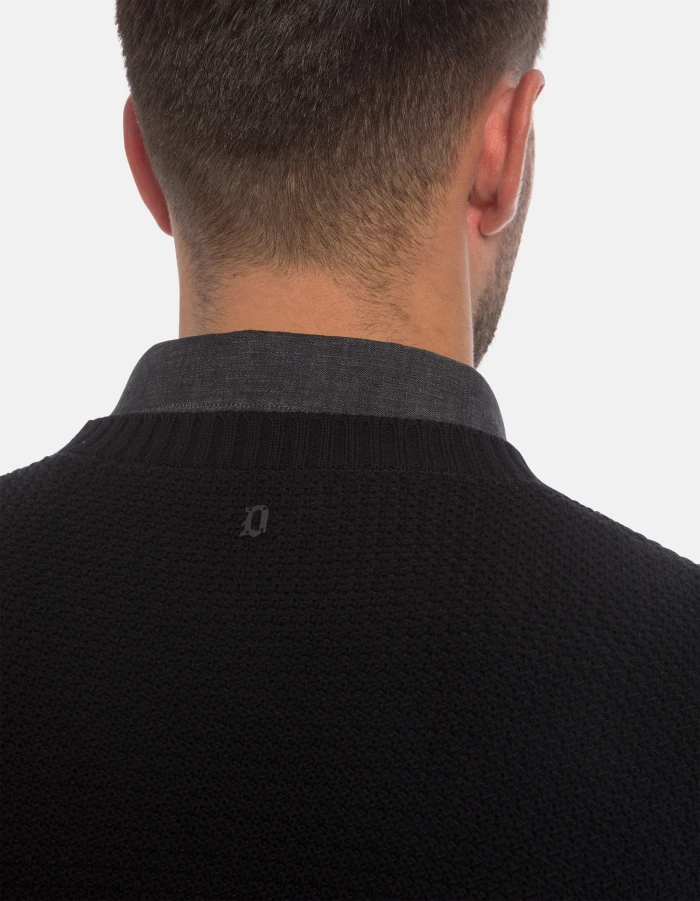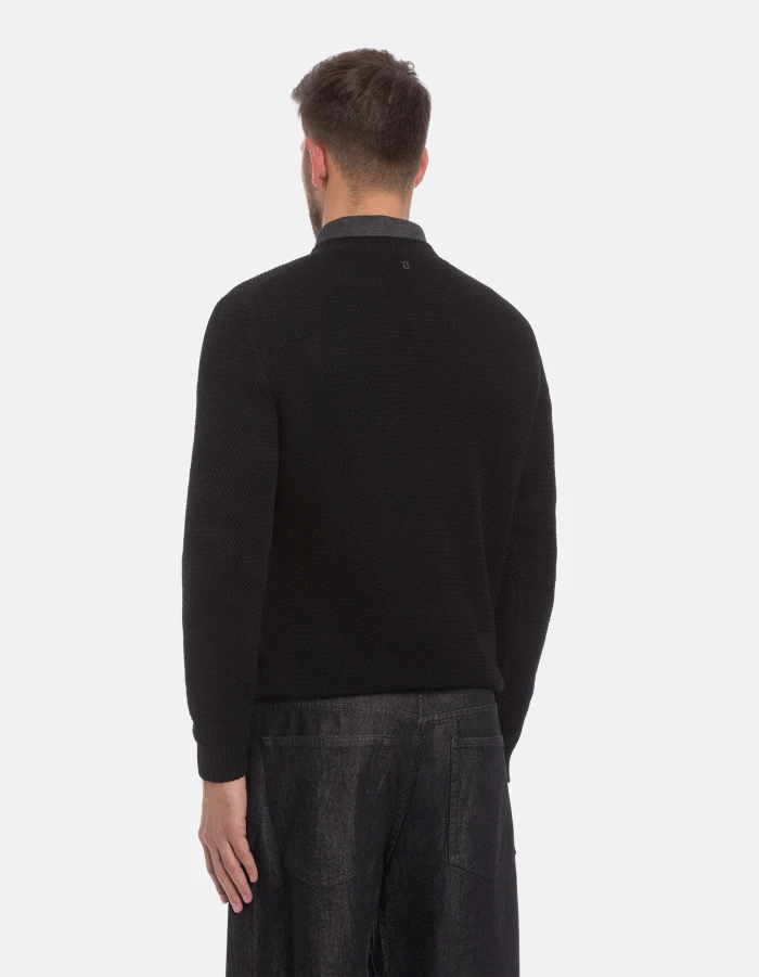 Regular-fit crew-neck jumper with fleece collar and logo appliqué on the back. Honeycomb. Dondup logo. Made in Italy