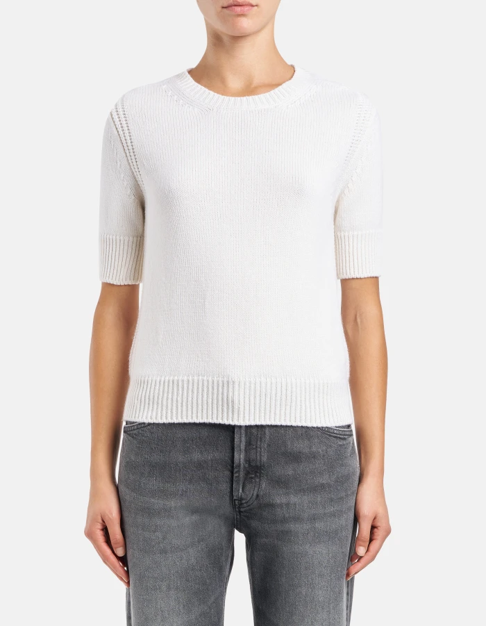 Regular-fit crew-neck jumper in wool cashmere stocking stitch