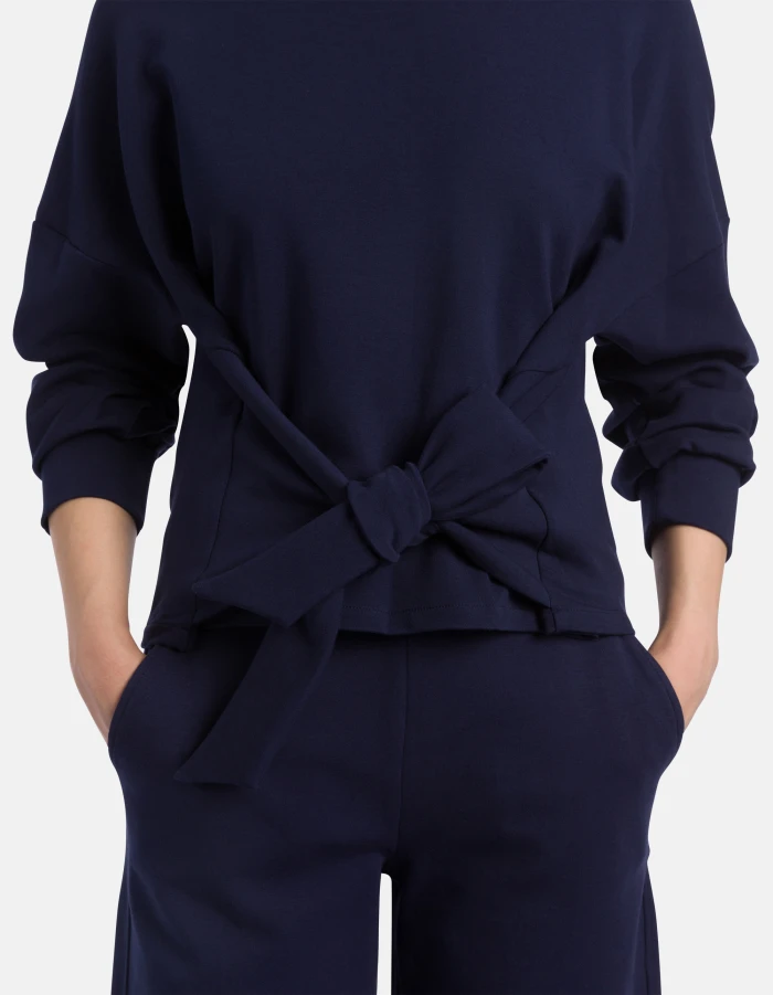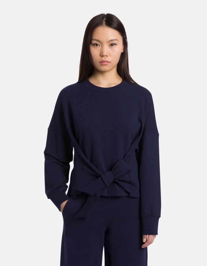 Regular-fit crew-neck sweatshirt with long sleeves and a ribbon to tie into a bow on the front or back. Double jersey. Dondup logo. Made in Italy