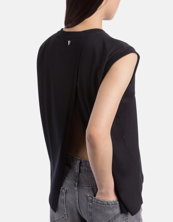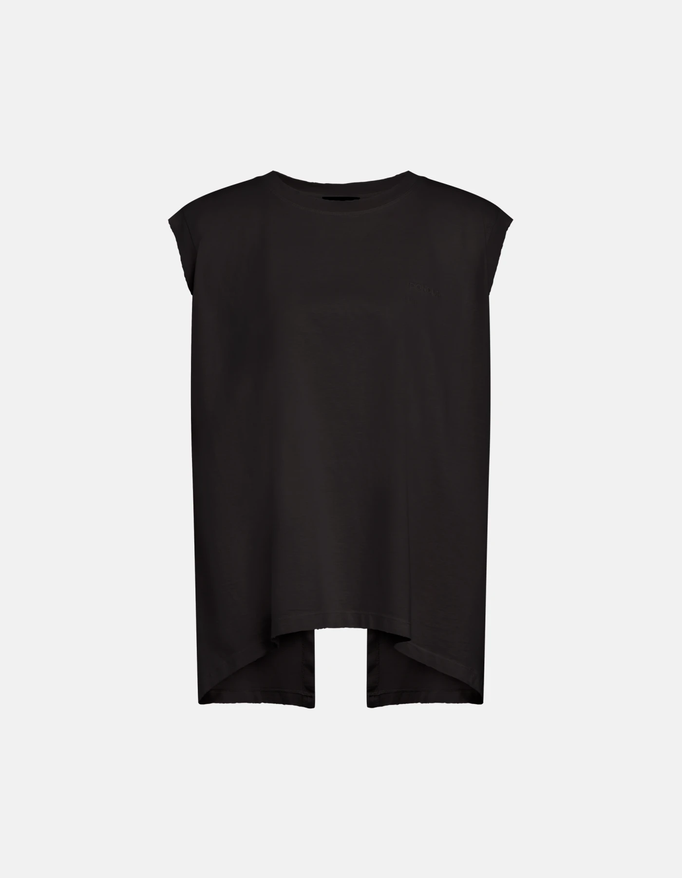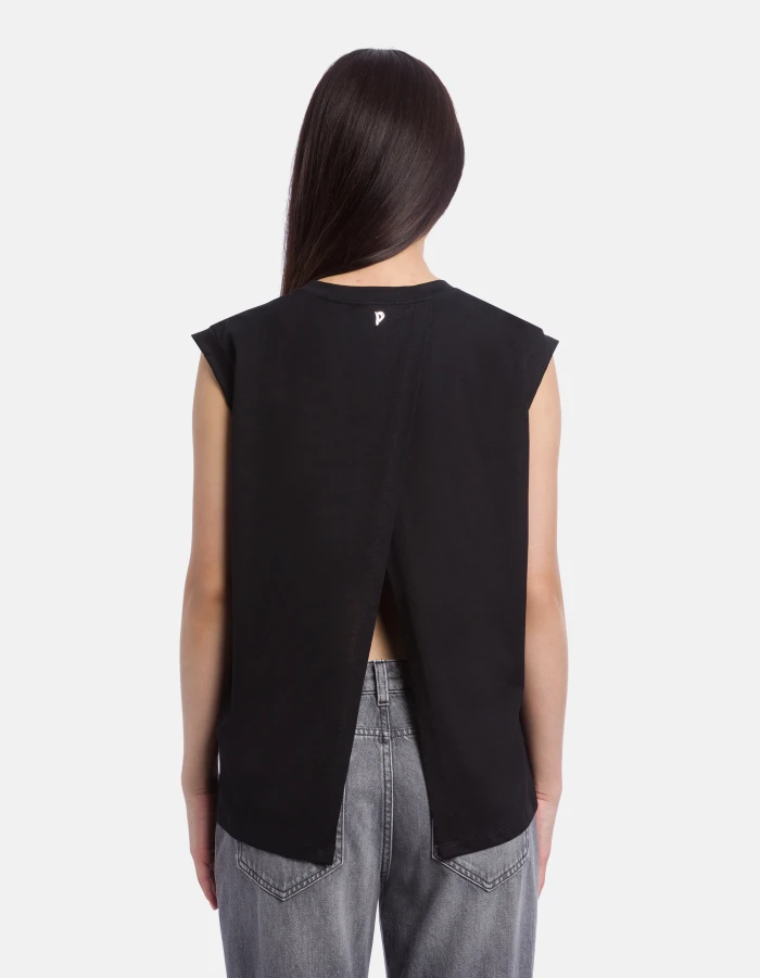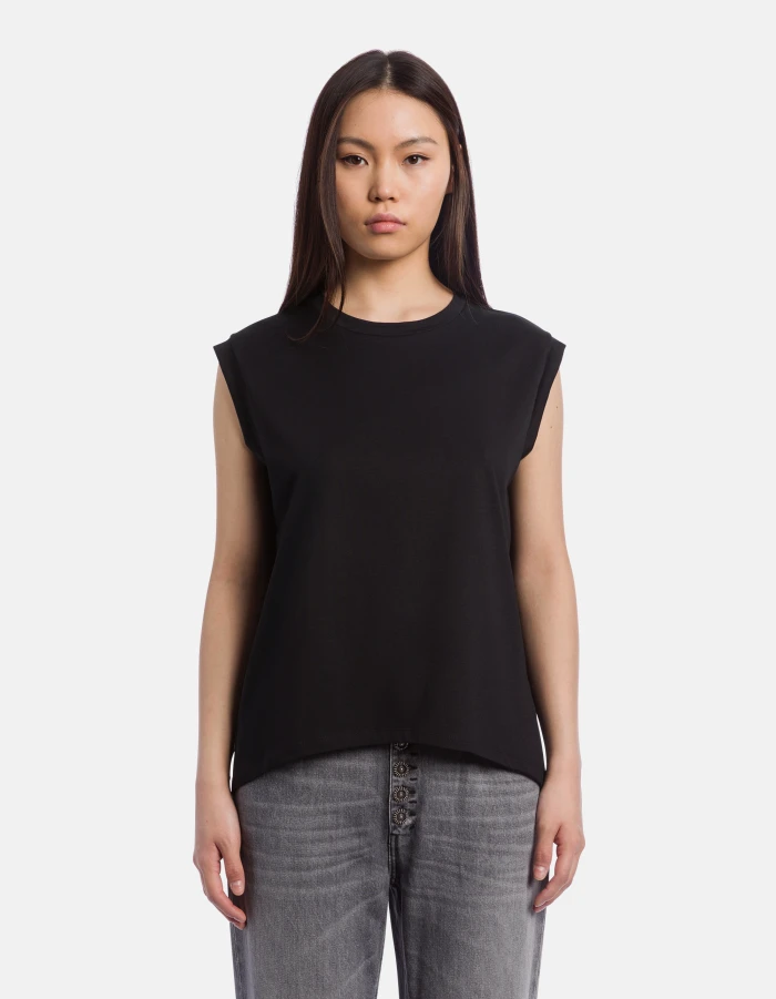 Regular-fit, sleeveless crew-neck T-shirt with back slit. Cotton jersey. Dondup logo. Made in Italy