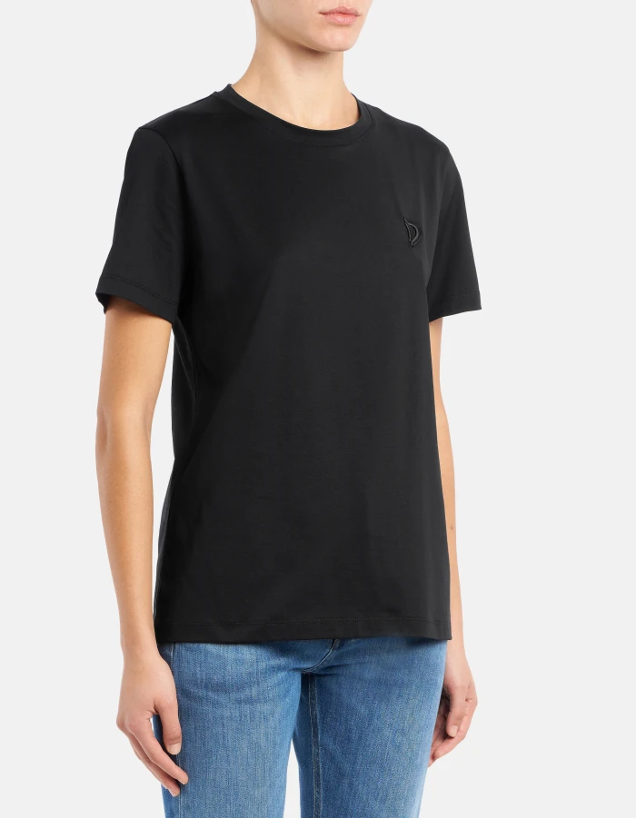 Regular-fit crew-neck T-shirt with short sleeves and embroidered logo on the chest. Cotton jersey. Dondup logo. Made in Italy