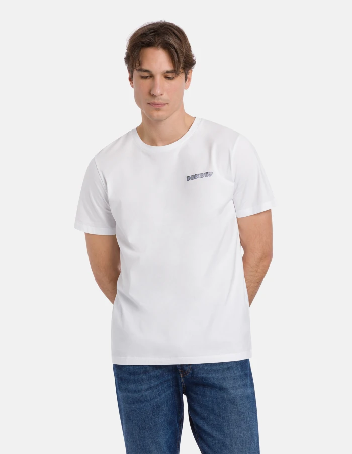 Regular-fit crew-neck T-shirt with short sleeves and digital logo printed on the left chest. Cotton jersey. Dondup logo. Made in Italy