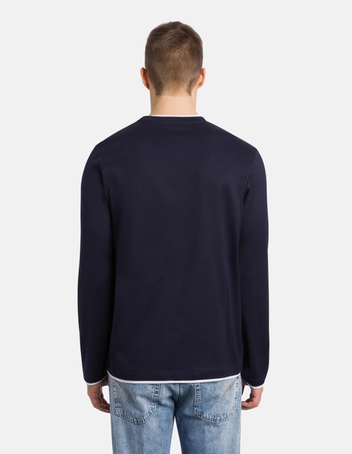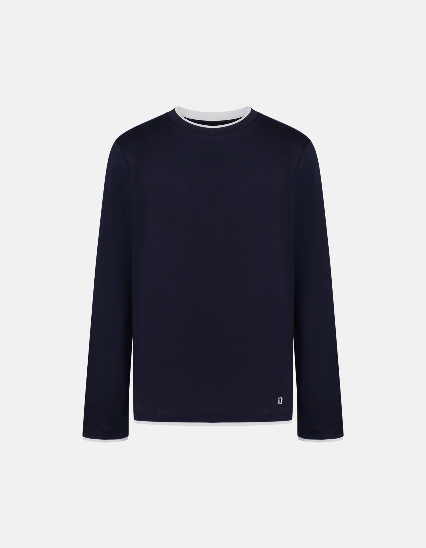 Regular-fit crew-neck T-shirt with long sleeves and contrast collar, sleeves and hem. D logo embroidered on the bottom left. Basic cotton jersey. Dondup logo. Made in Italy