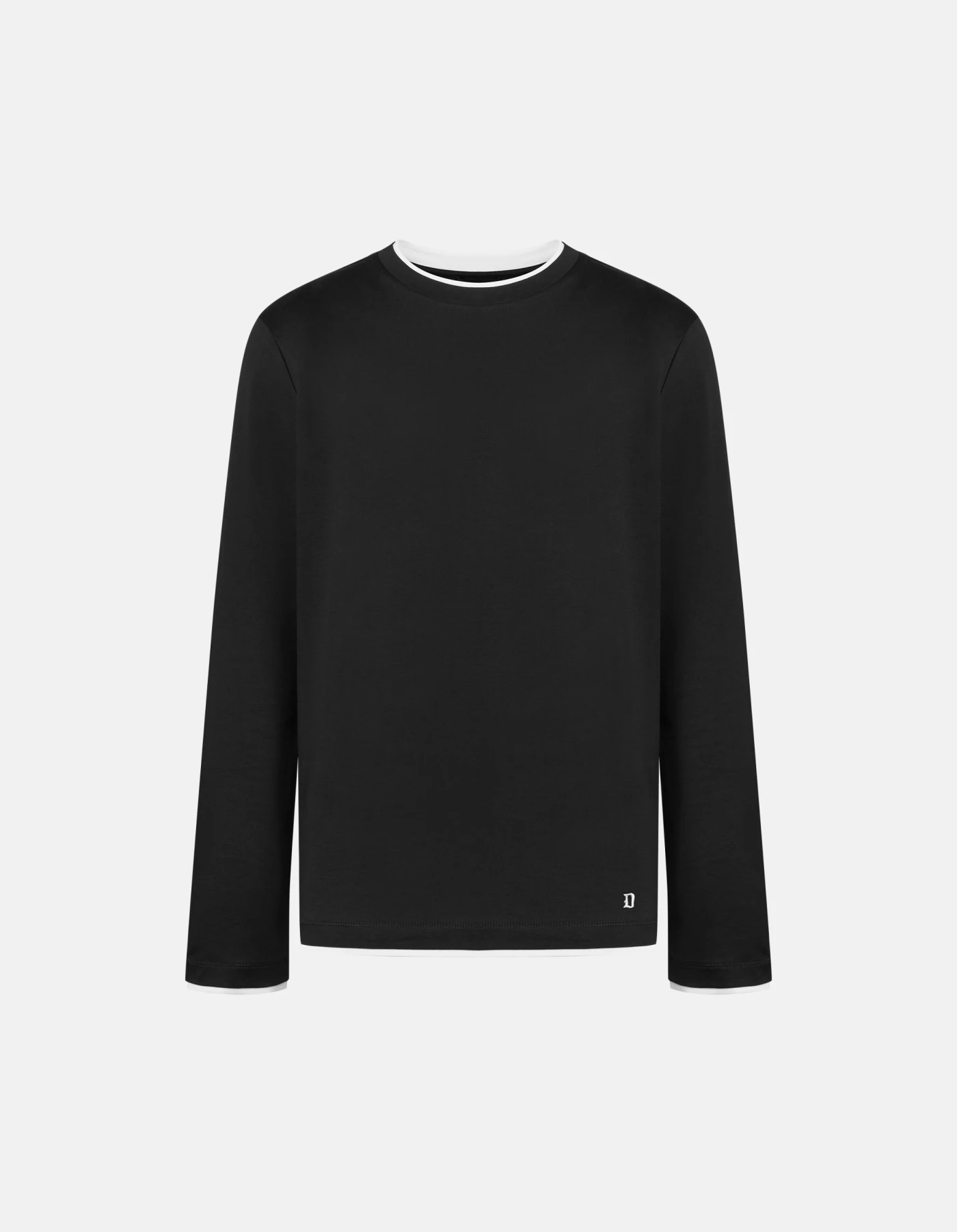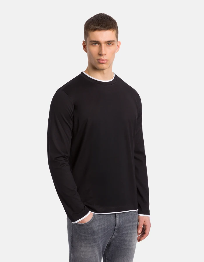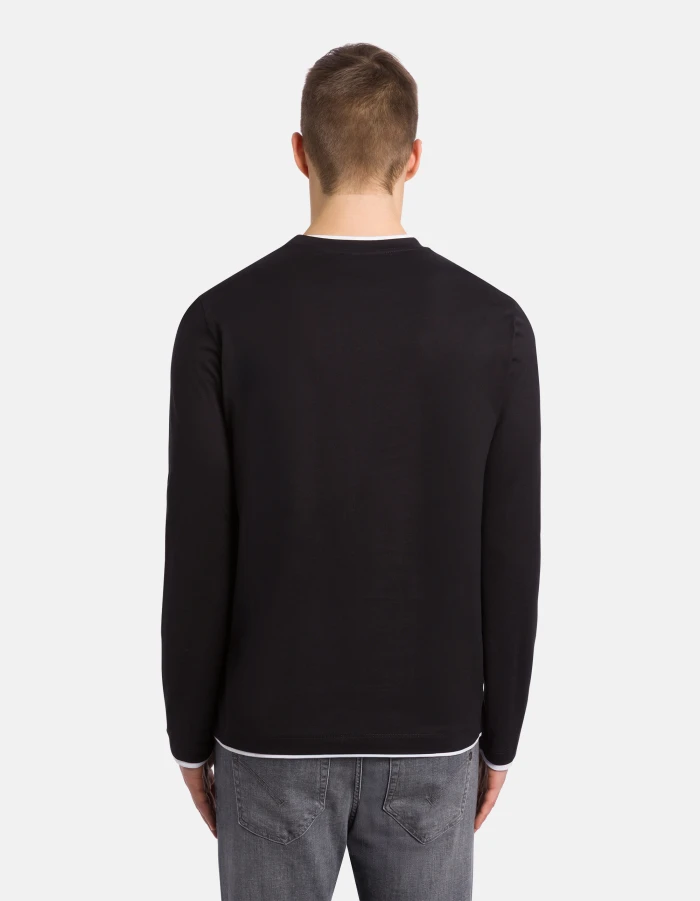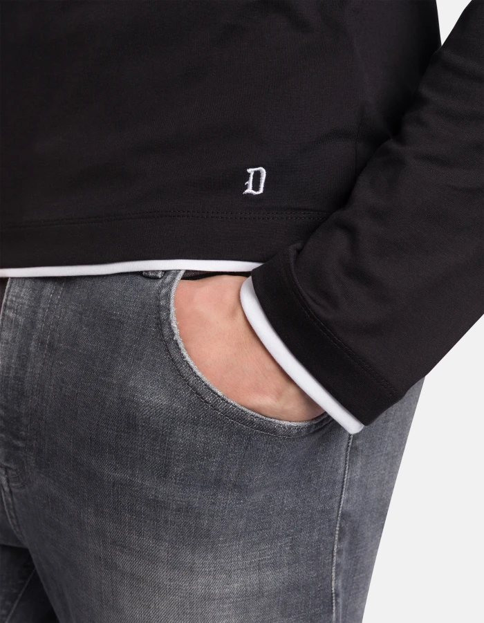 Regular-fit crew-neck T-shirt with long sleeves and contrast collar, sleeves and hem. D logo embroidered on the bottom left. Basic cotton jersey. Dondup logo. Made in Italy