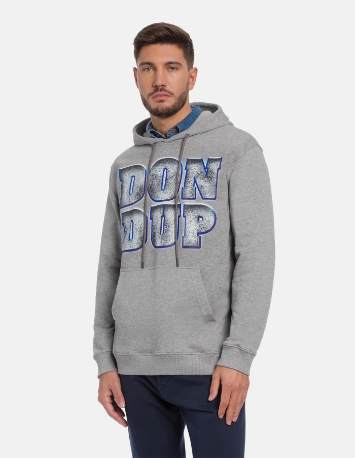 Regular-fit hoodie, long sleeves, pouch pocket and digital logo print on the chest. Cotton fleece. Dondup logo. Made in Italy