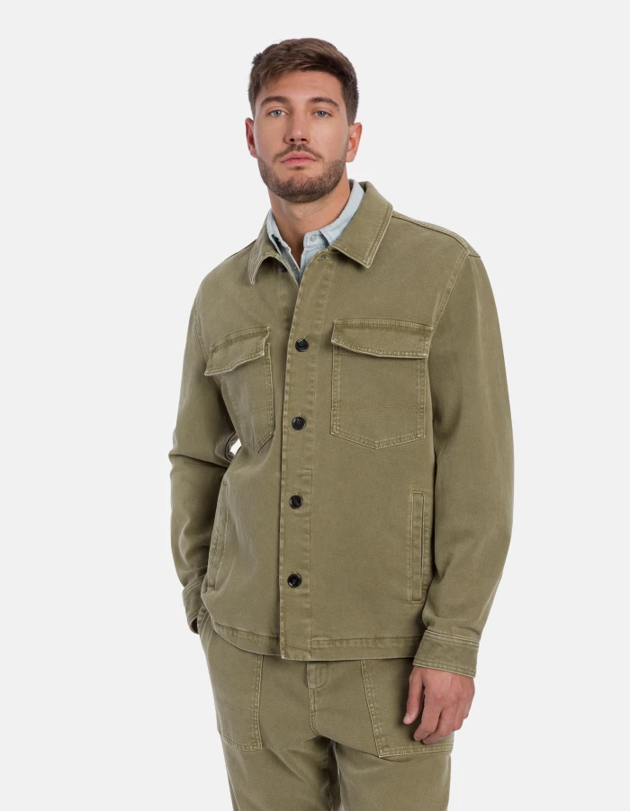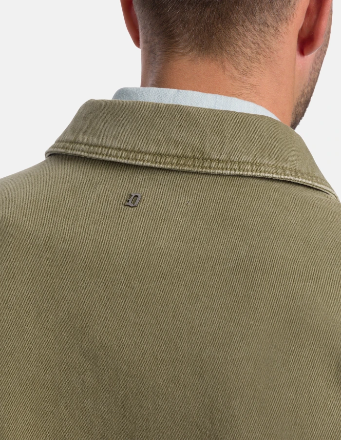 Regular-fit jacket with shirt collar, upper patch pockets with pointed flap, lower side welt pockets, unlined. Button fastening. 11.5 oz bluesign APPROVED stretch bull denim. Bluesign vintage garment dye. Dondup logo. Made in Italy
