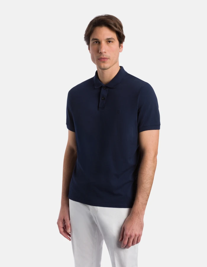 Regular-fit polo shirt with short sleeves and D logo embroidered on the left chest. Cotton and nylon. Garment-dyed. Dondup logo. Made in Italy