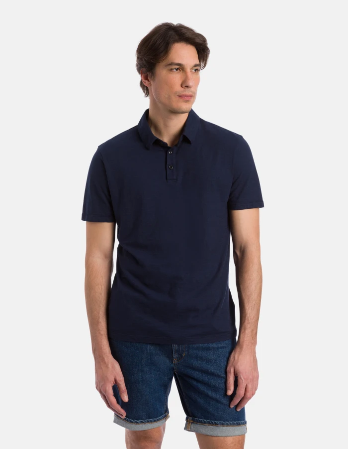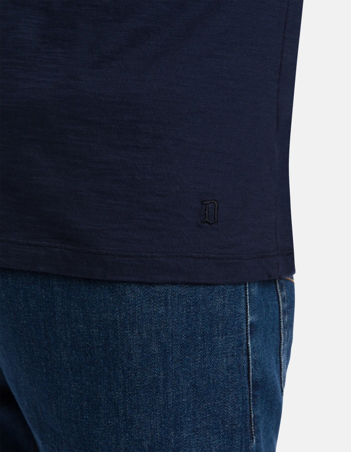 Regular-fit polo shirt with short sleeves and embroidered D logo at the left hemline. Slub jersey. Garment dyed. Dondup logo. Made in Italy