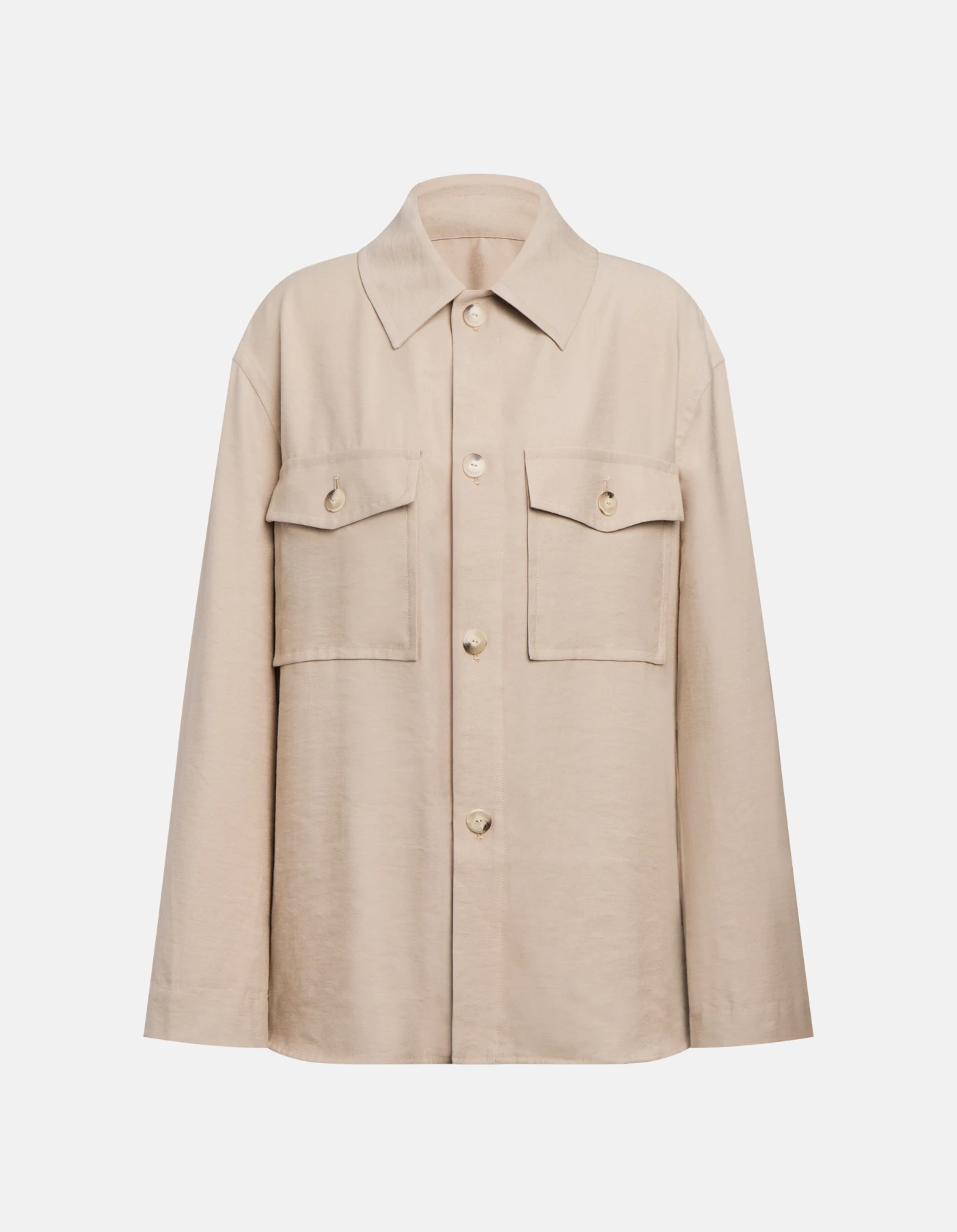 Regular-fit long-sleeved shirt with four-hole button fastening and patch pockets on the front. Viscose gabardine. Dondup logo. Made in Italy
