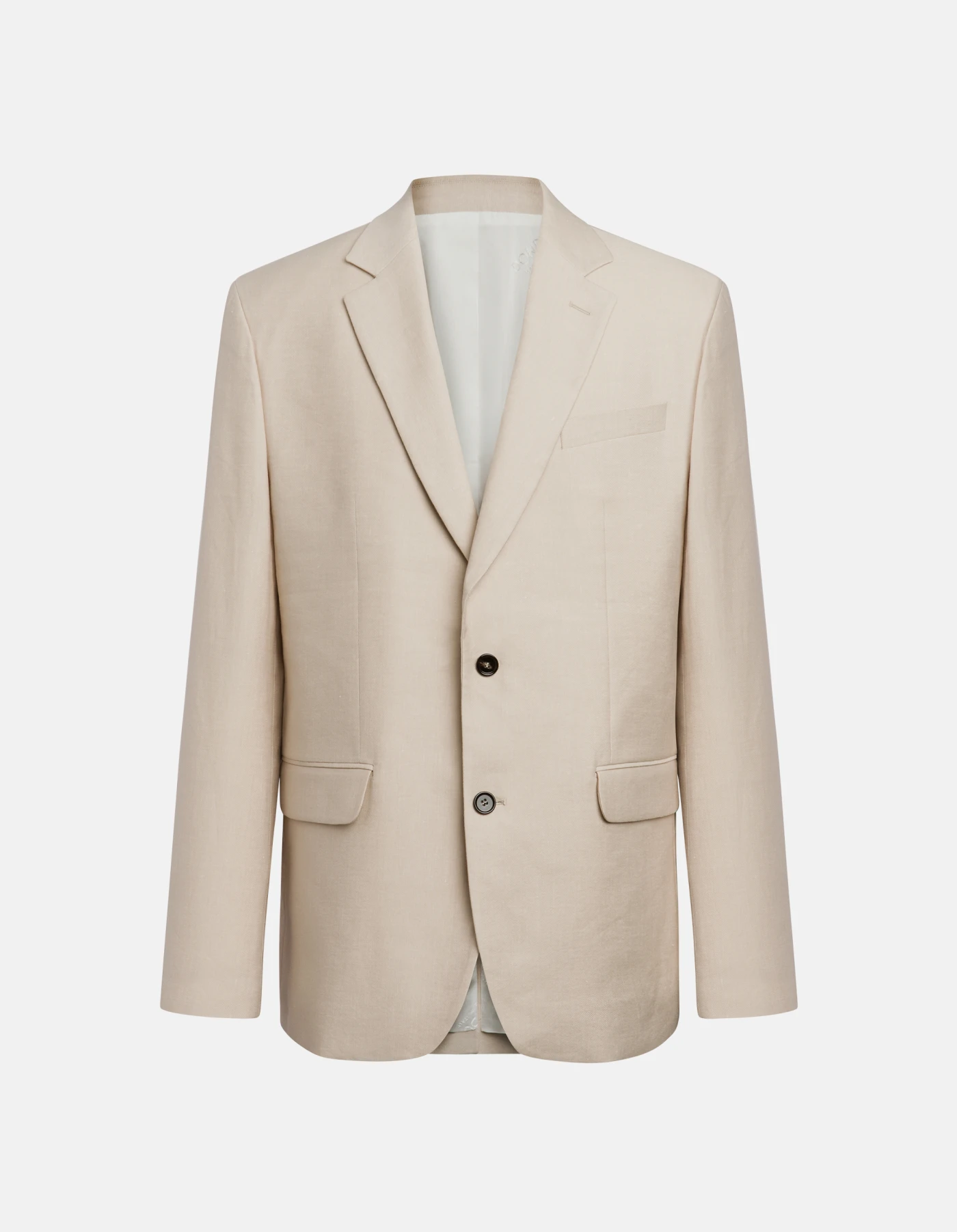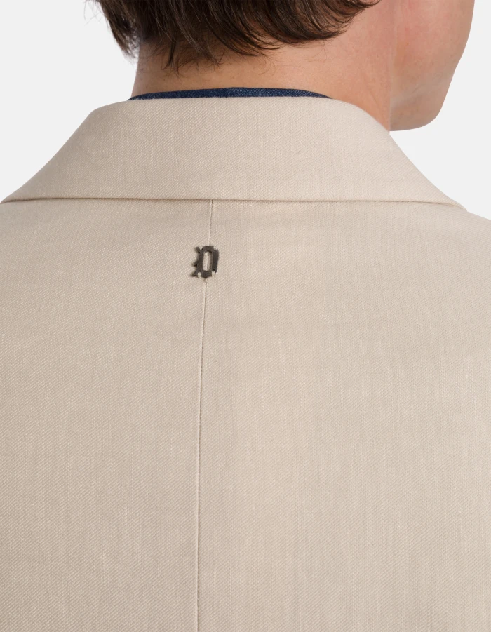 Regular-fit single-breasted blazer with two buttons, notched lapels, flap pockets and chest pocket, lined. Stretch linen and cotton gabardine. Dondup logo. Made in Italy