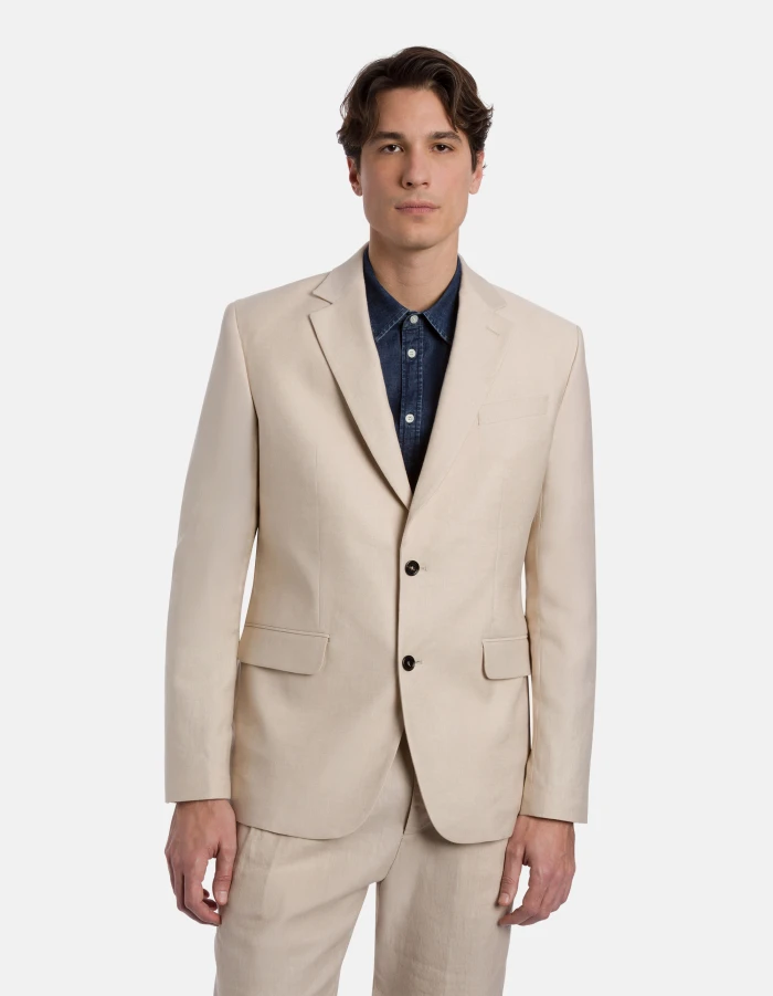 Regular-fit single-breasted blazer in linen and cotton gabardine