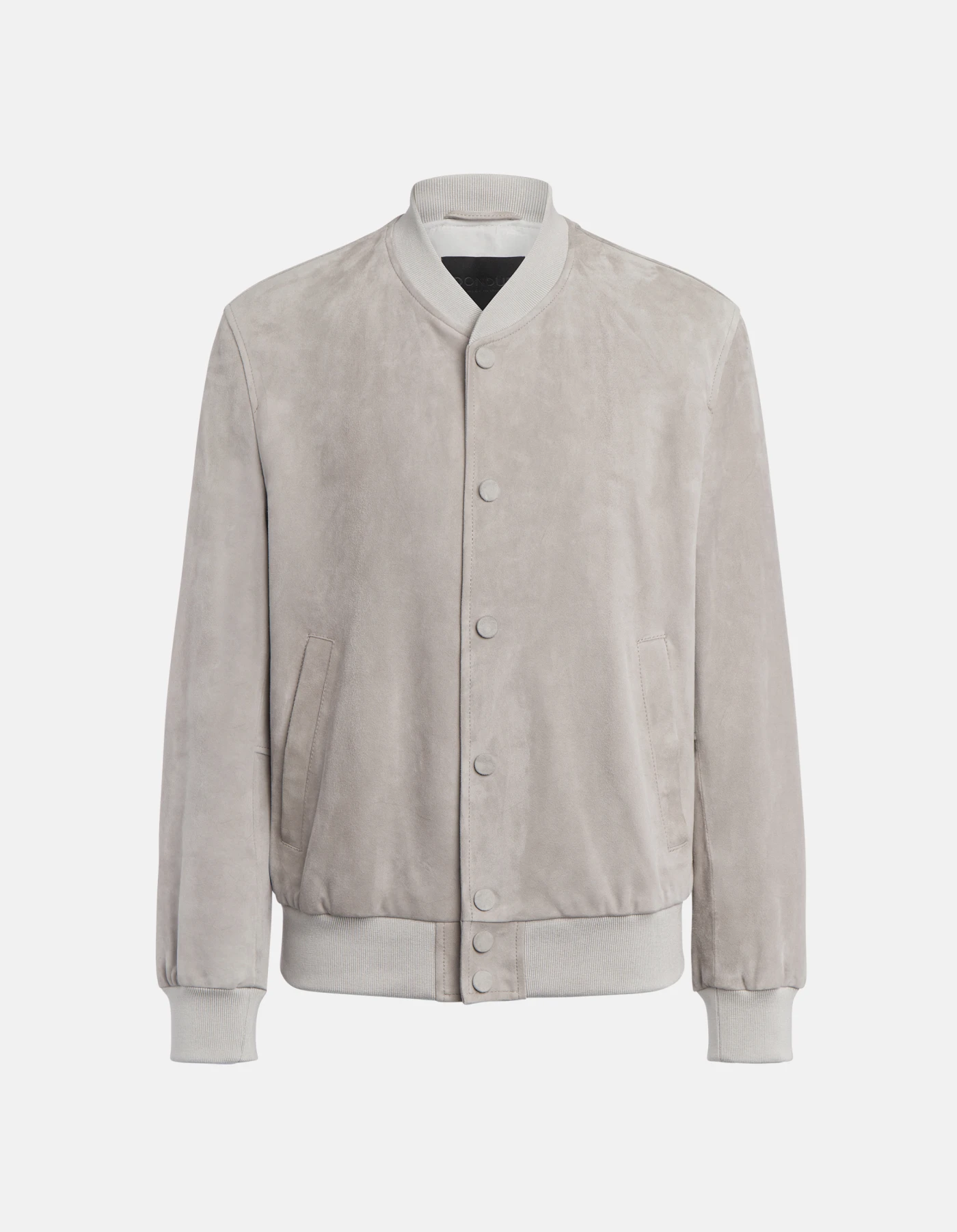 Regular-fit bomber jacket with side welt pockets, lined. Knitted collar, bottom and cuffs. Covered button fastening. Suede. Dondup logo. Made in Italy
