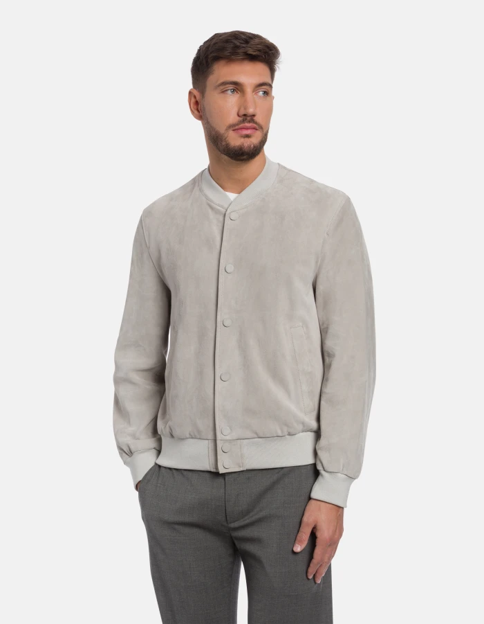 Regular-fit suede bomber jacket