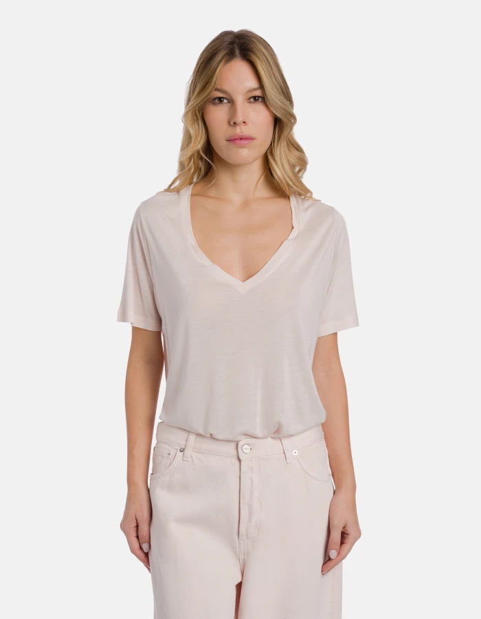 Regular-fit V-neck T-shirt in modal and silk