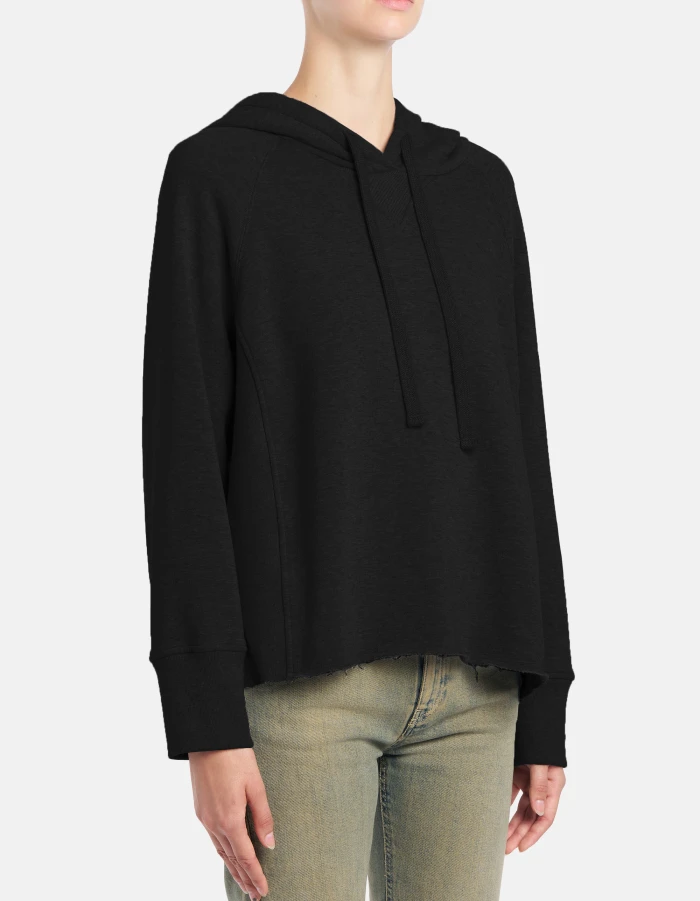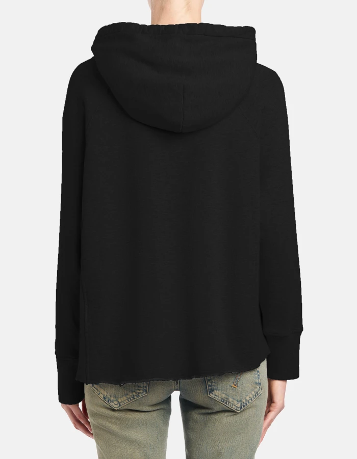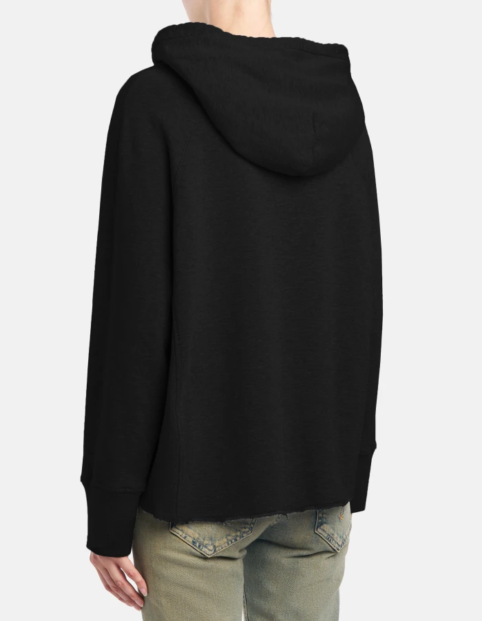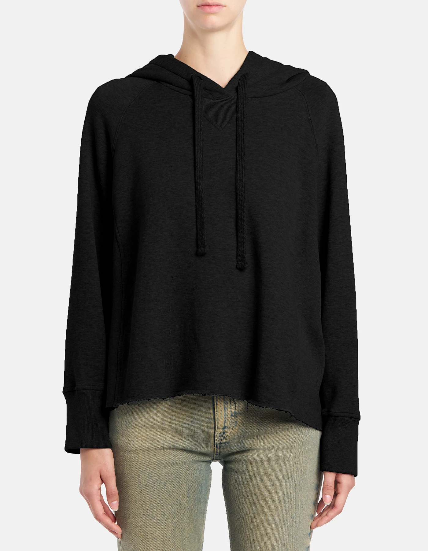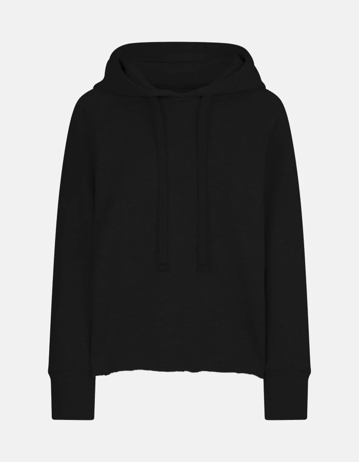 Regular sweatshirt with hood, long sleeves, drawstring and ribbed sides. Raw edge hem. Logo applique at the back. Brushed fleece. Dondup logo. Made in Italy