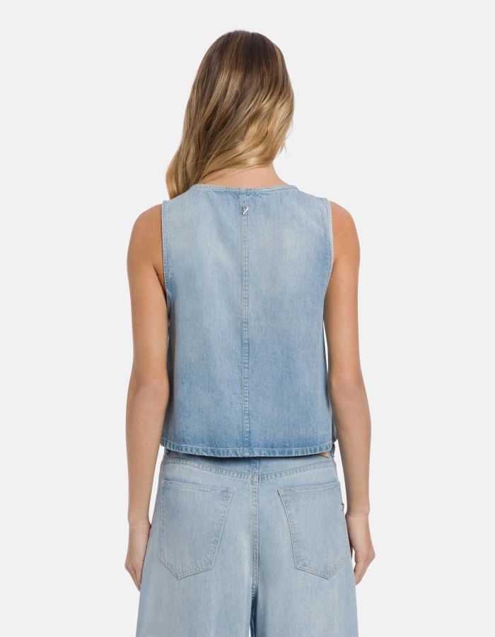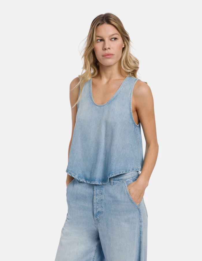 Rigid lyocell denim crop top