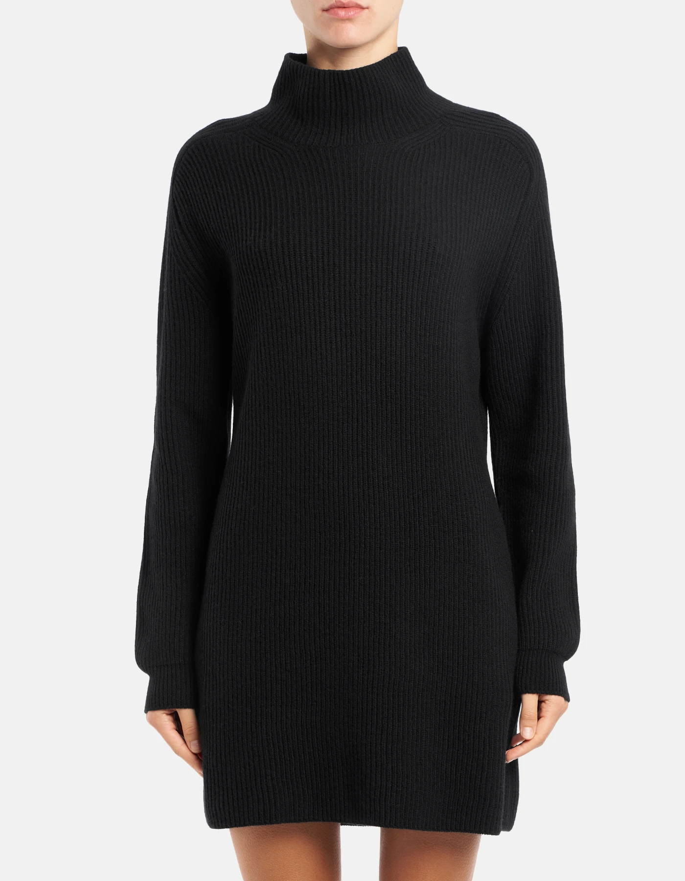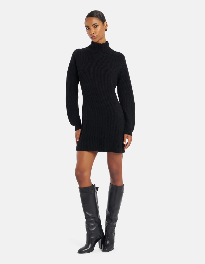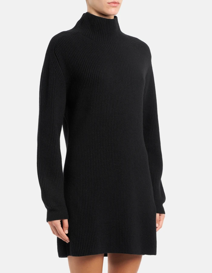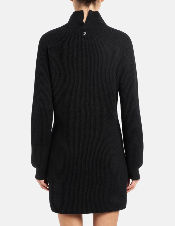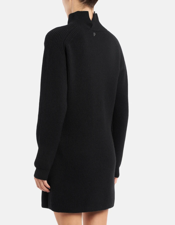 Regular-fit long-sleeved short dress with high neckline with opening at the back. Fisherman’s rib. Dondup logo. Made in Italy