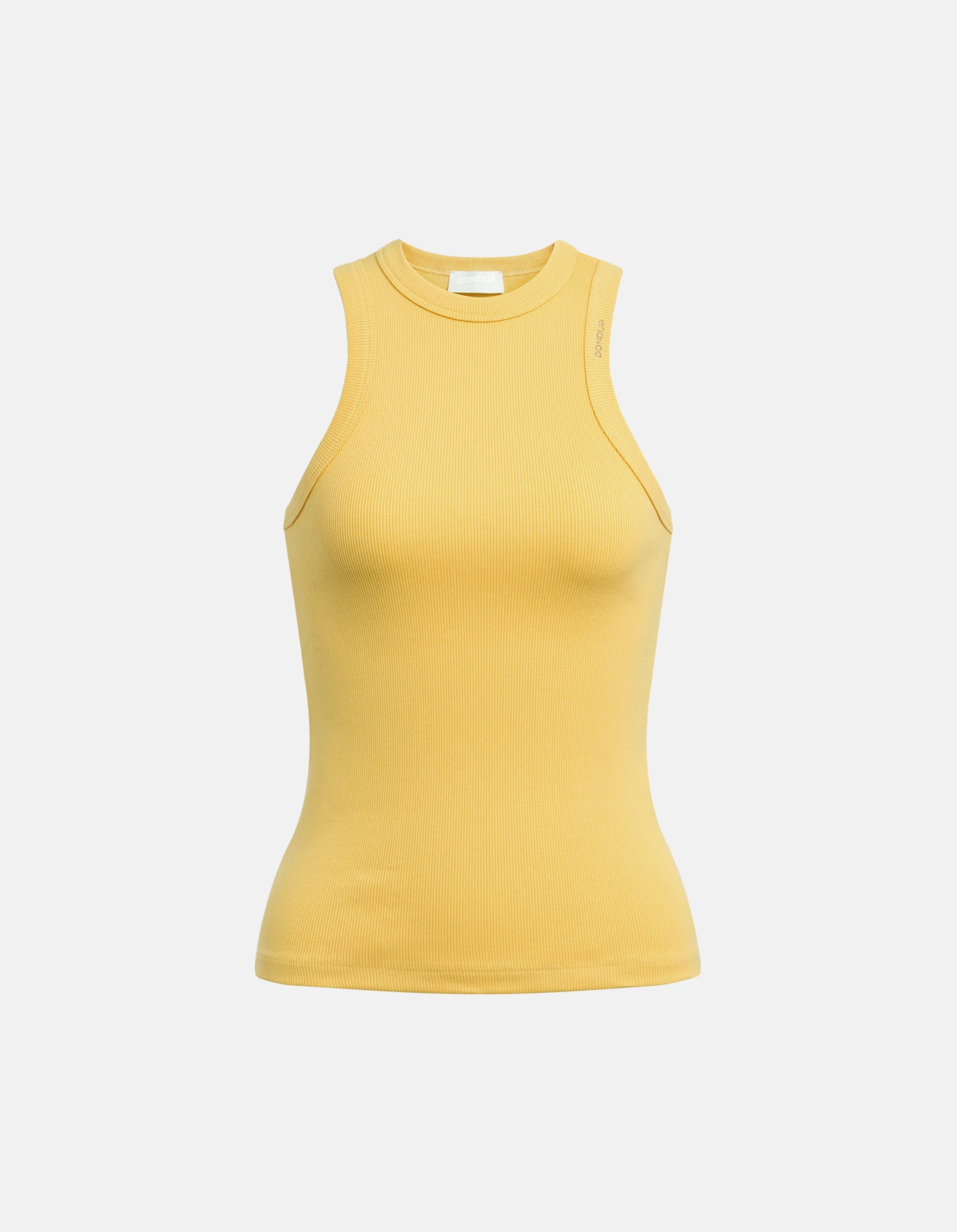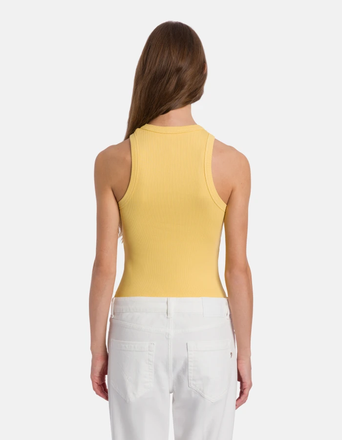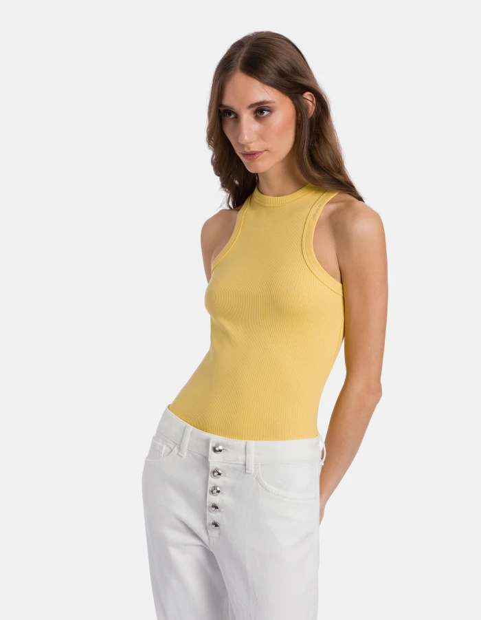 Slim-fit crew-neck vest with halter neck and embroidered logo on the left shoulder. Ribbed cotton. Dondup logo. Made in Italy