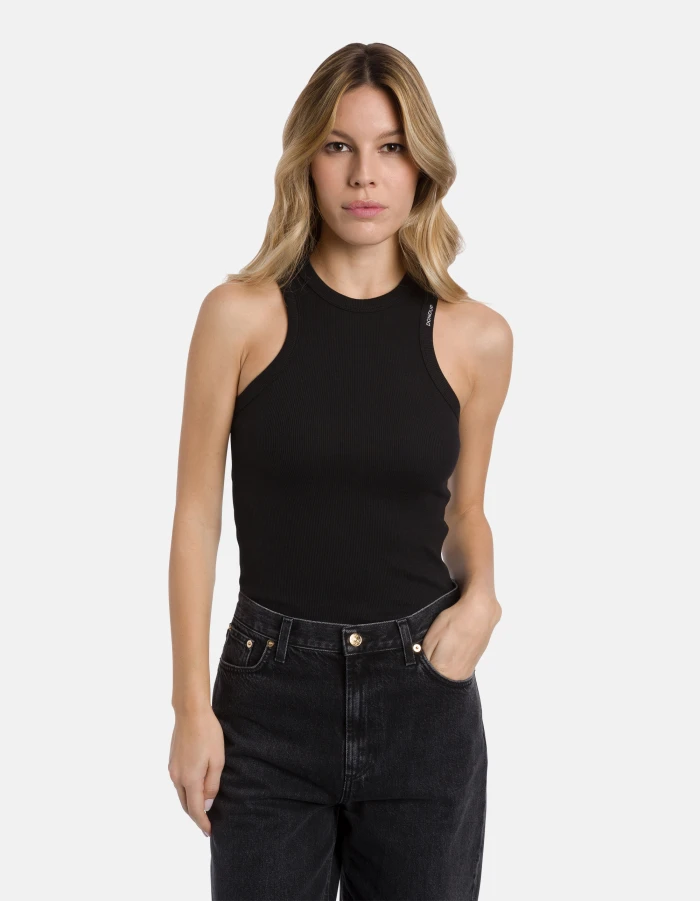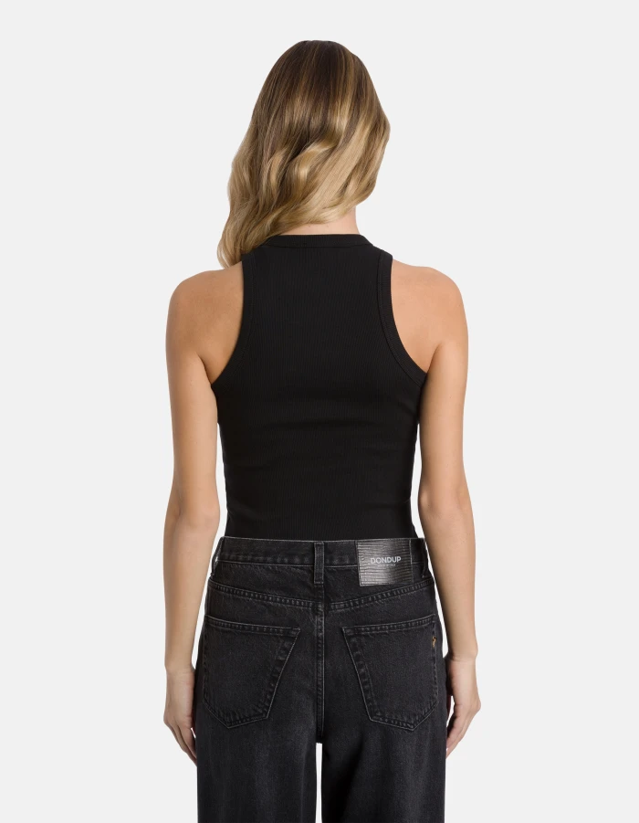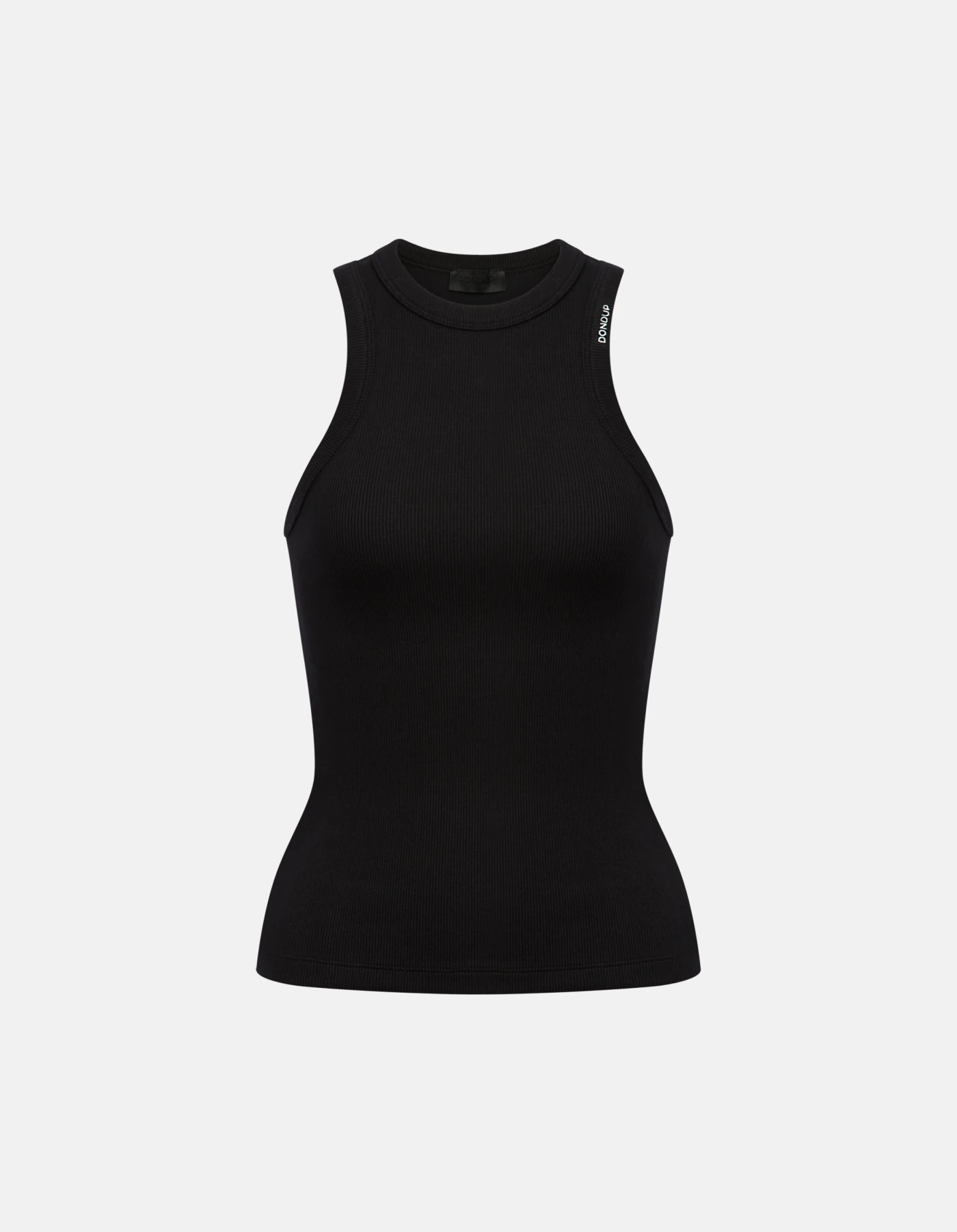 Slim-fit crew-neck vest with halter neck and embroidered logo on the left shoulder. Ribbed cotton. Dondup logo. Made in Italy