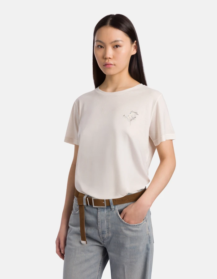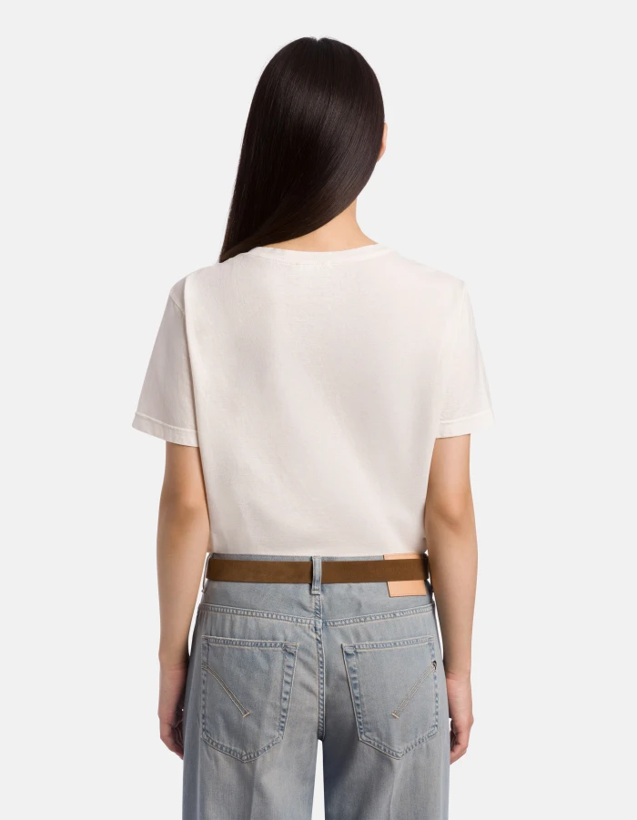 Slim-fit crew-neck T-shirt with short sleeves and embroidered logo on the chest. Lightweight jersey. Dondup logo. Made in Italy