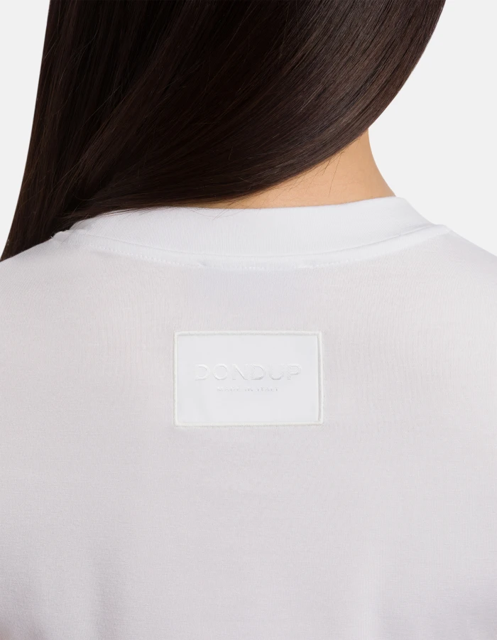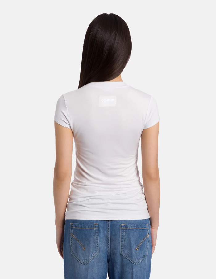 Slim-fit crew-neck T-shirt with short sleeves and embroidered logo label on the back. Viscose. Dondup logo. Made in Italy