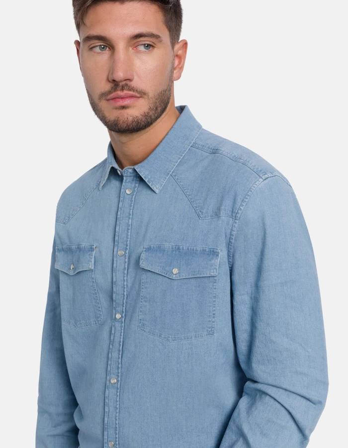 Slim-fit Western-style shirt in stretch denim