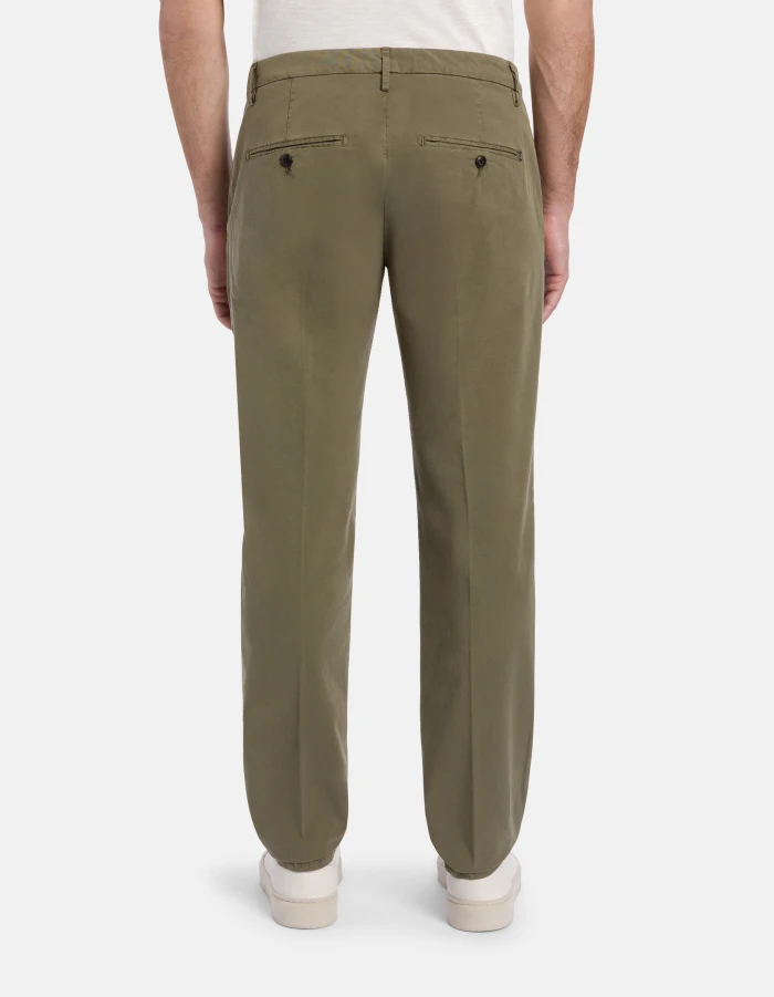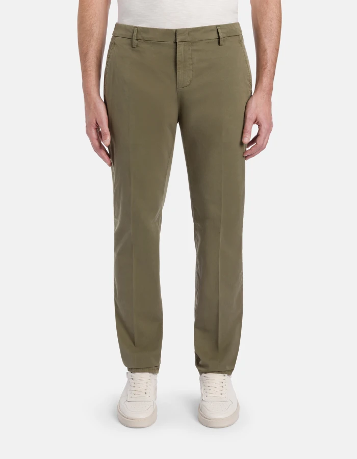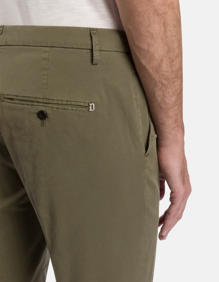 Spiritissimo regular-fit chinos, regular waist, welt pockets at the back. Lightweight gabardine. Garment dyed. Dondup logo. Made in Italy