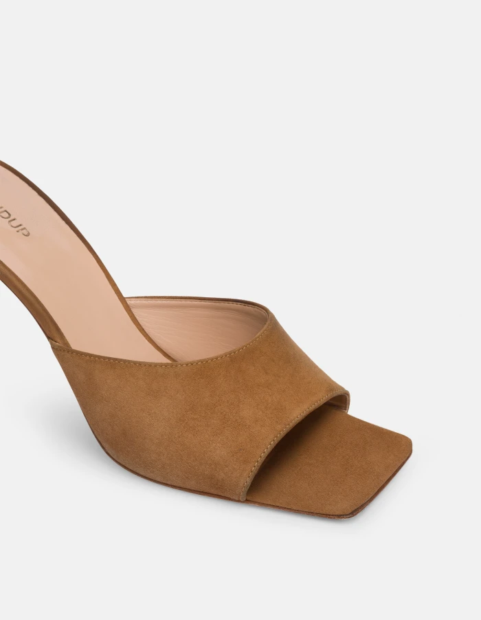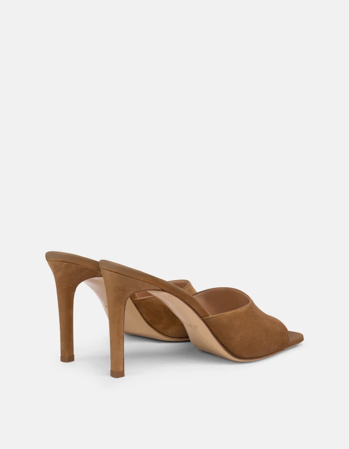 Mules with 80 mm covered heel and leather sole. Suede. Made in Italy