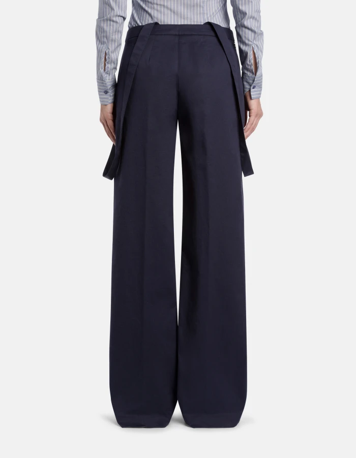 Tecla wide-leg chinos with adjustable waistband and removable braces. Stretch gabardine. Dondup logo. Made in Italy