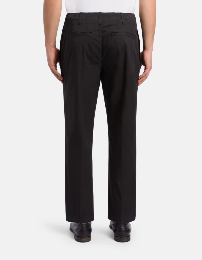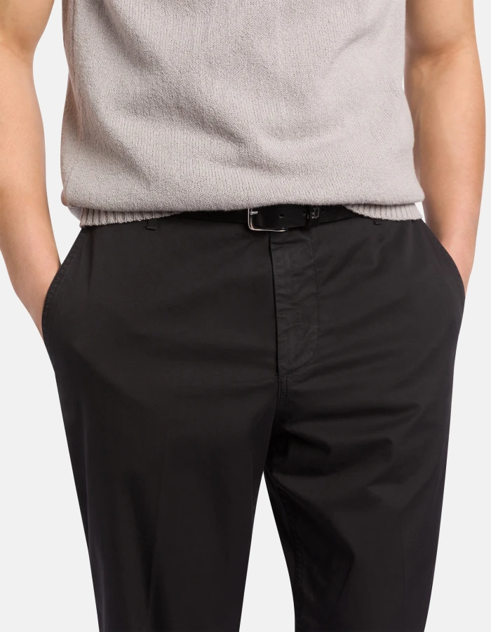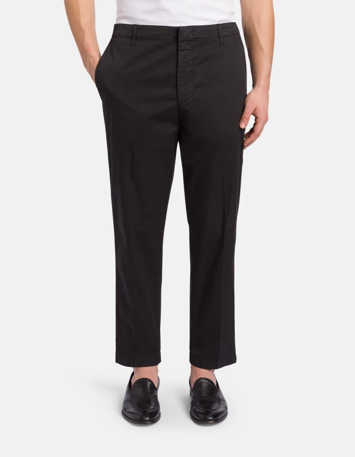 Zyan carrot-cut chinos, regular waist, welt pockets at the back. Lightweight gabardine. Garment dyed. Dondup logo. Made in Italy